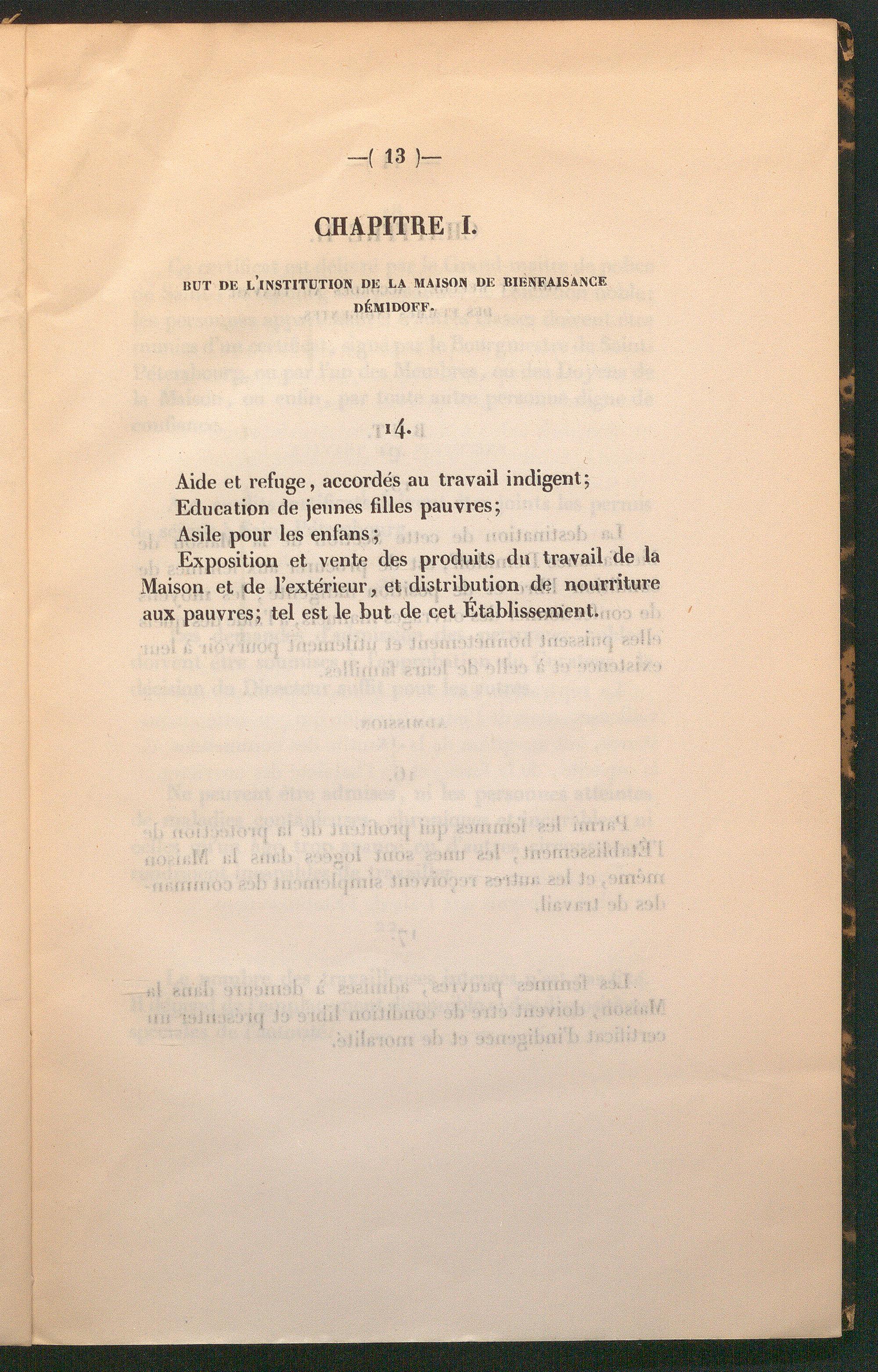 Statuts de la maison de bienfaisance Démidoff a Saint Pétersbourg