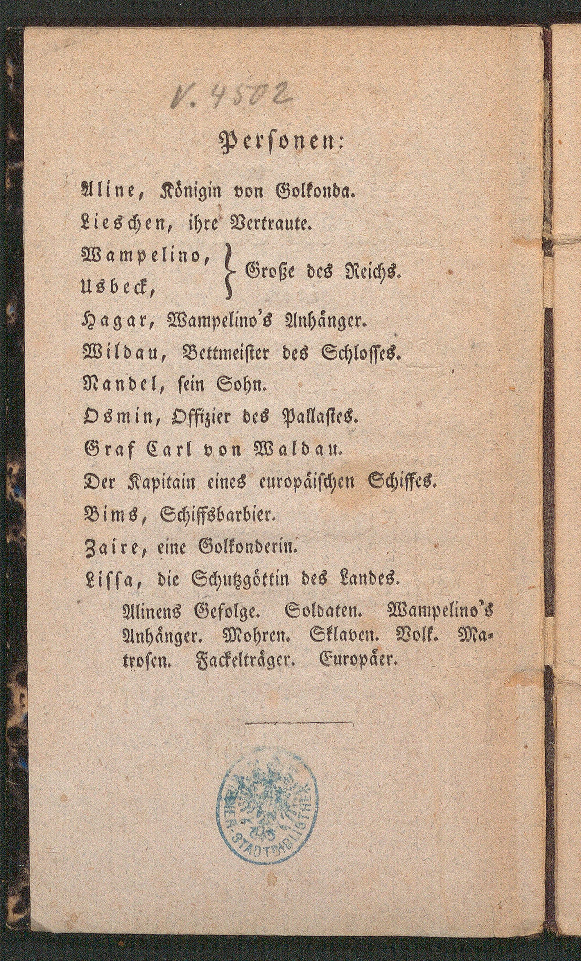 Aline, Königin von Golkonda, oder: Dresden in einem andern Welttheile : Lokalposse in 3 Akten / nach Bäuerle ; Musik von verschiedenen Komponisten