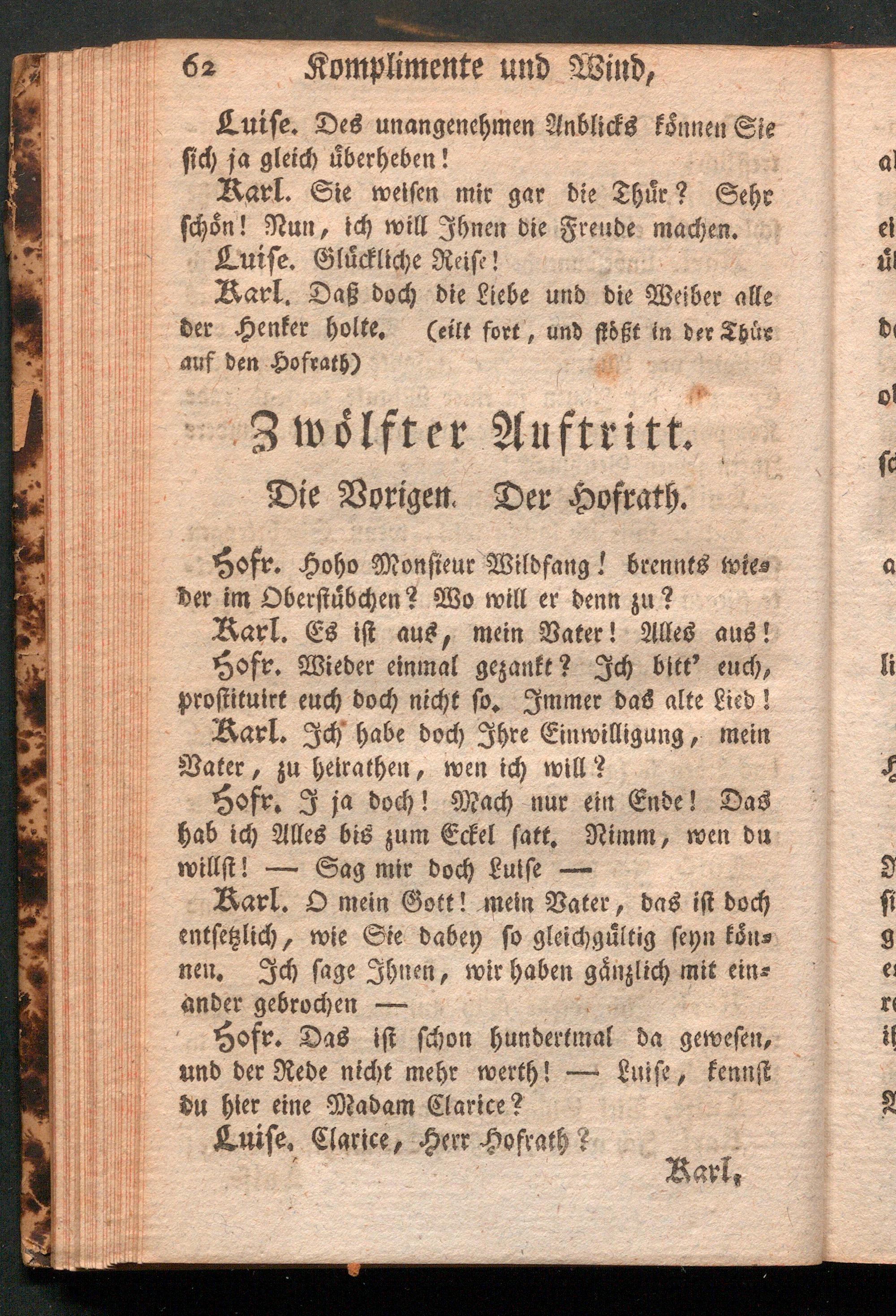 Komplimente und Wind : Ein Lustspiel in vier Aufzügen / Von C. F. Bretzner