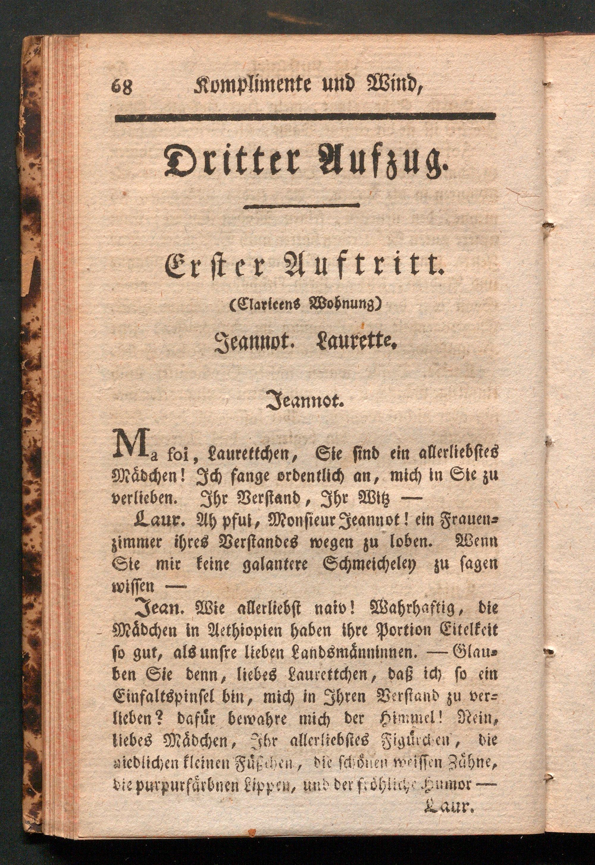 Komplimente und Wind : Ein Lustspiel in vier Aufzügen / Von C. F. Bretzner