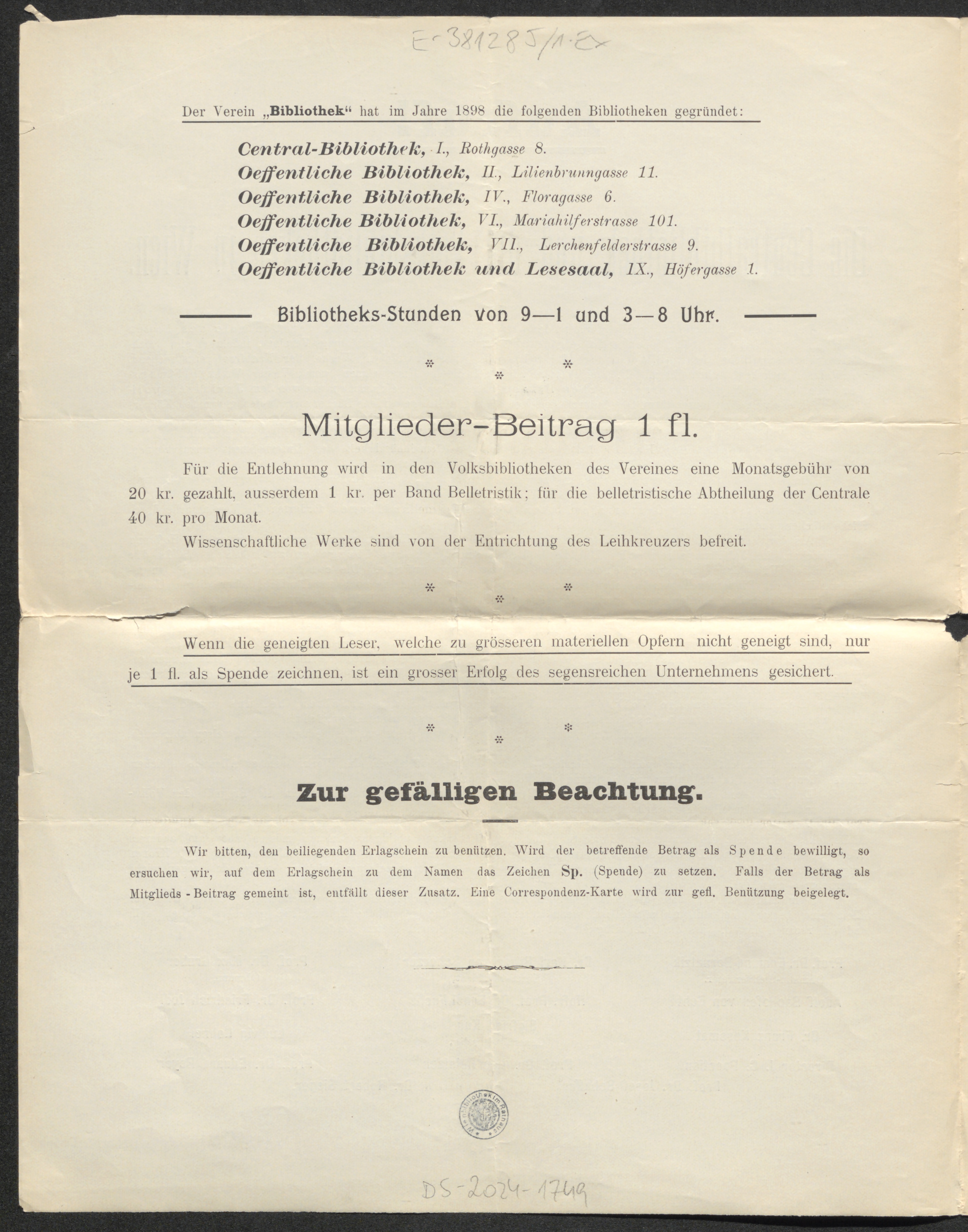 Aufruf! Die Centralbibliothek und die Volksbibliotheken in Wien : Der Verein "Bibliothek", welcher unter dem Protectorate ... / Edmund Bernatzik ...