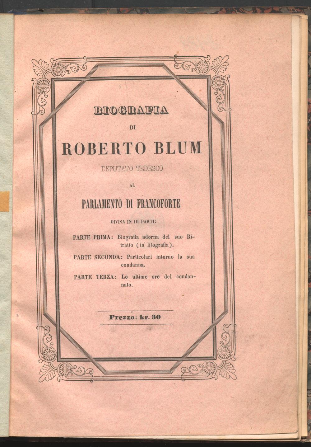 Biografia di Roberto Blum depitato tedesco al parlamento di Francoforte