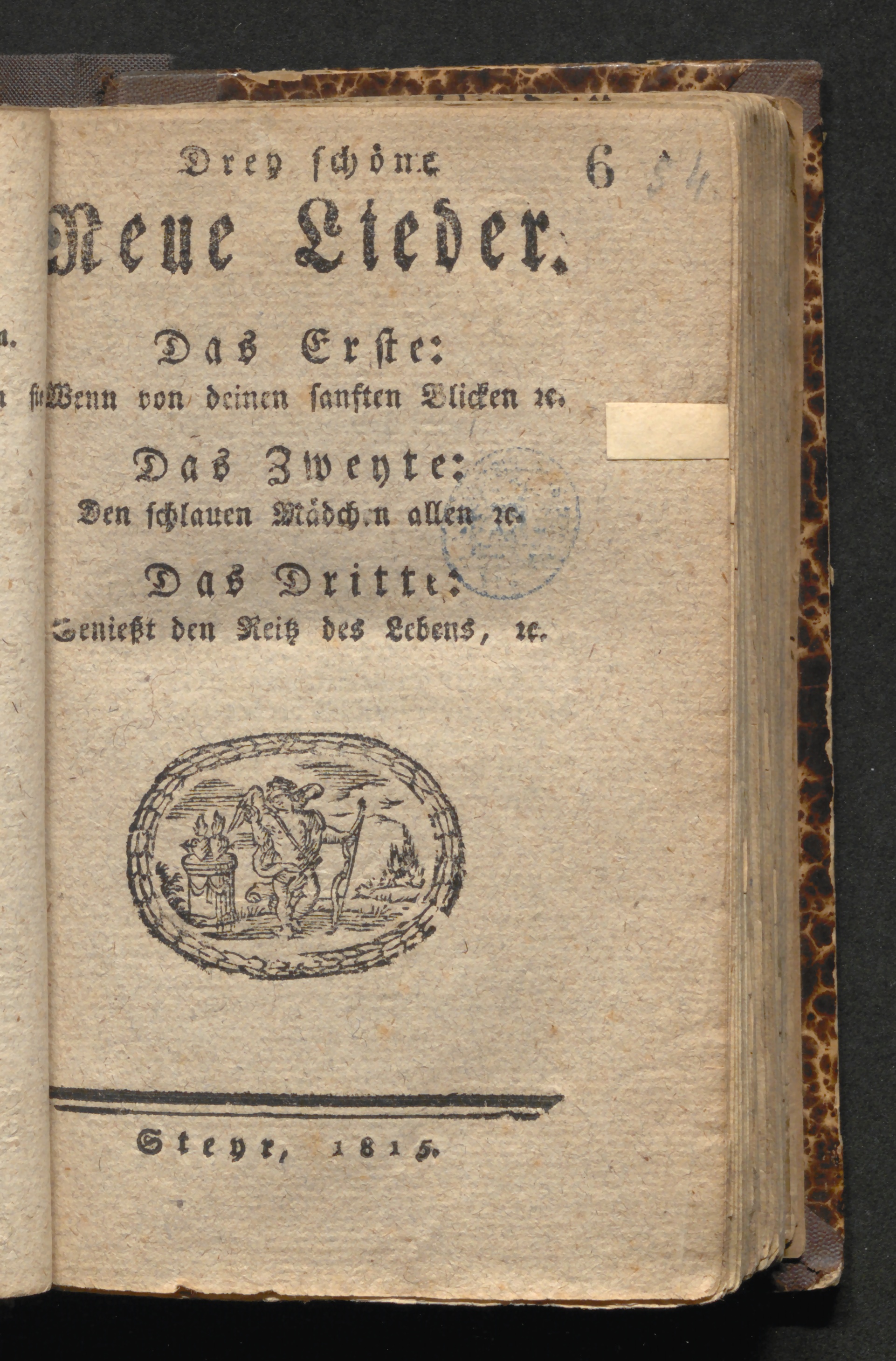 Drey schöne neue Lieder : Das Erste: Wenn von deinen sanften Blicken [et]c. Das Zweyte: Den schlauen Mädchen allen [et]c. Das Dritte: Genießt den Reitz des Lebens, [et]c.