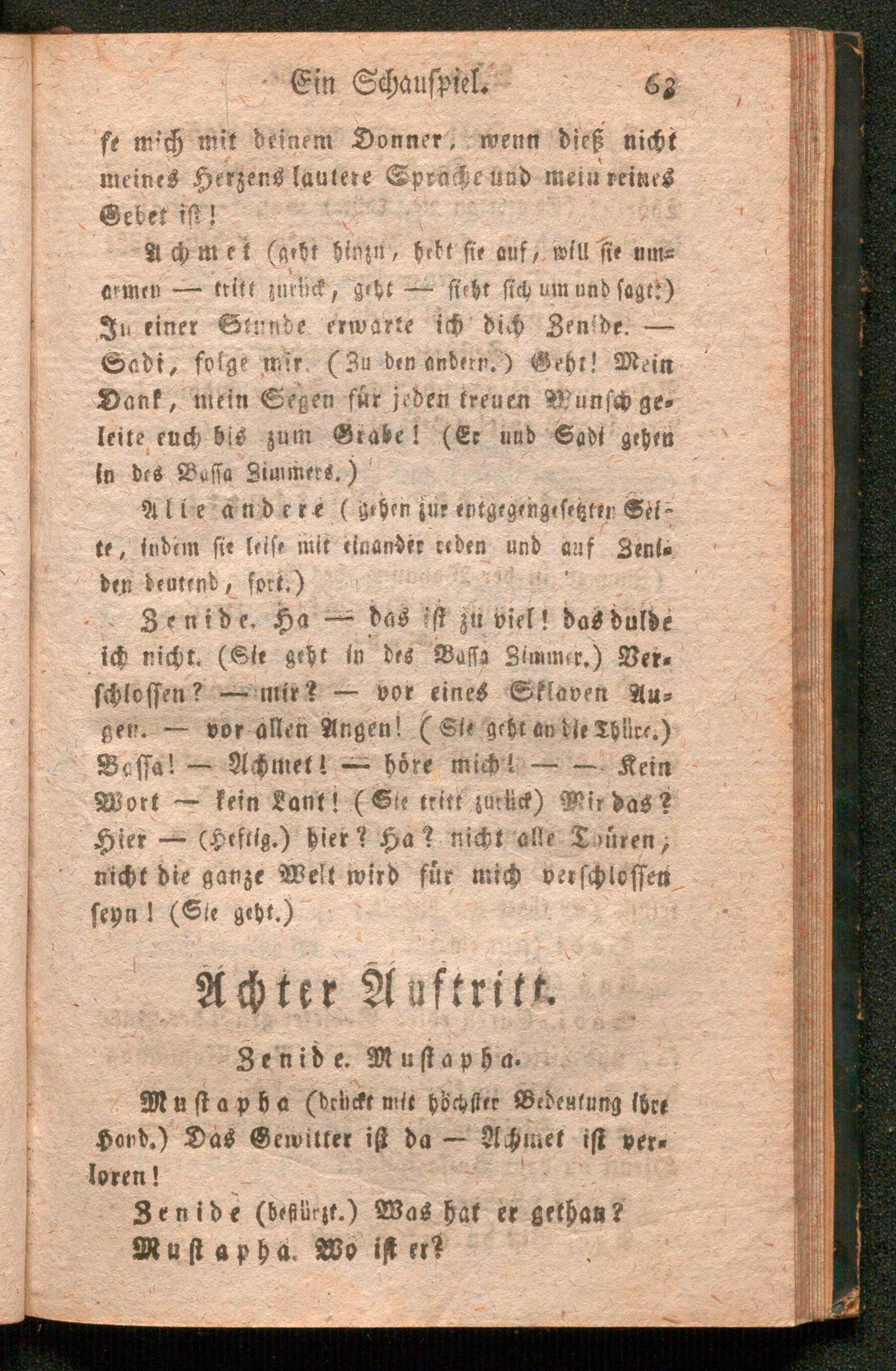 Achmet und Zenide : Ein Schauspiel in fünf Aufzügen / von August Wilhelm Iffland