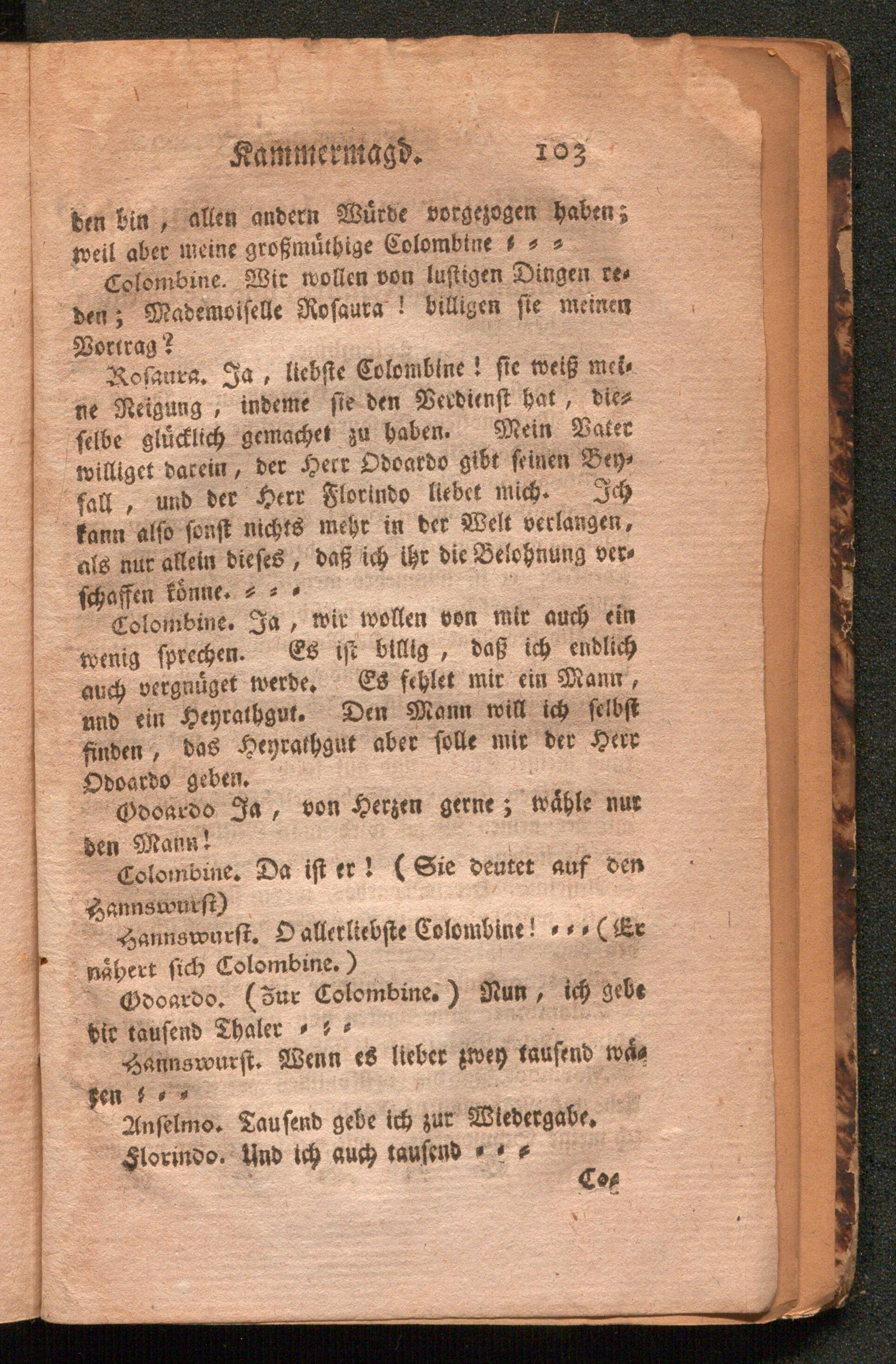 Die gutherzige Kammermagd : Ein Lustspiel von drey Aufzügen / dem Italienischen des Herrn Goldoni nachgeahmet, und auf dem kais. kön. privilegirten deutschen Theater zu Wien aufgeführet im Jahr 1761