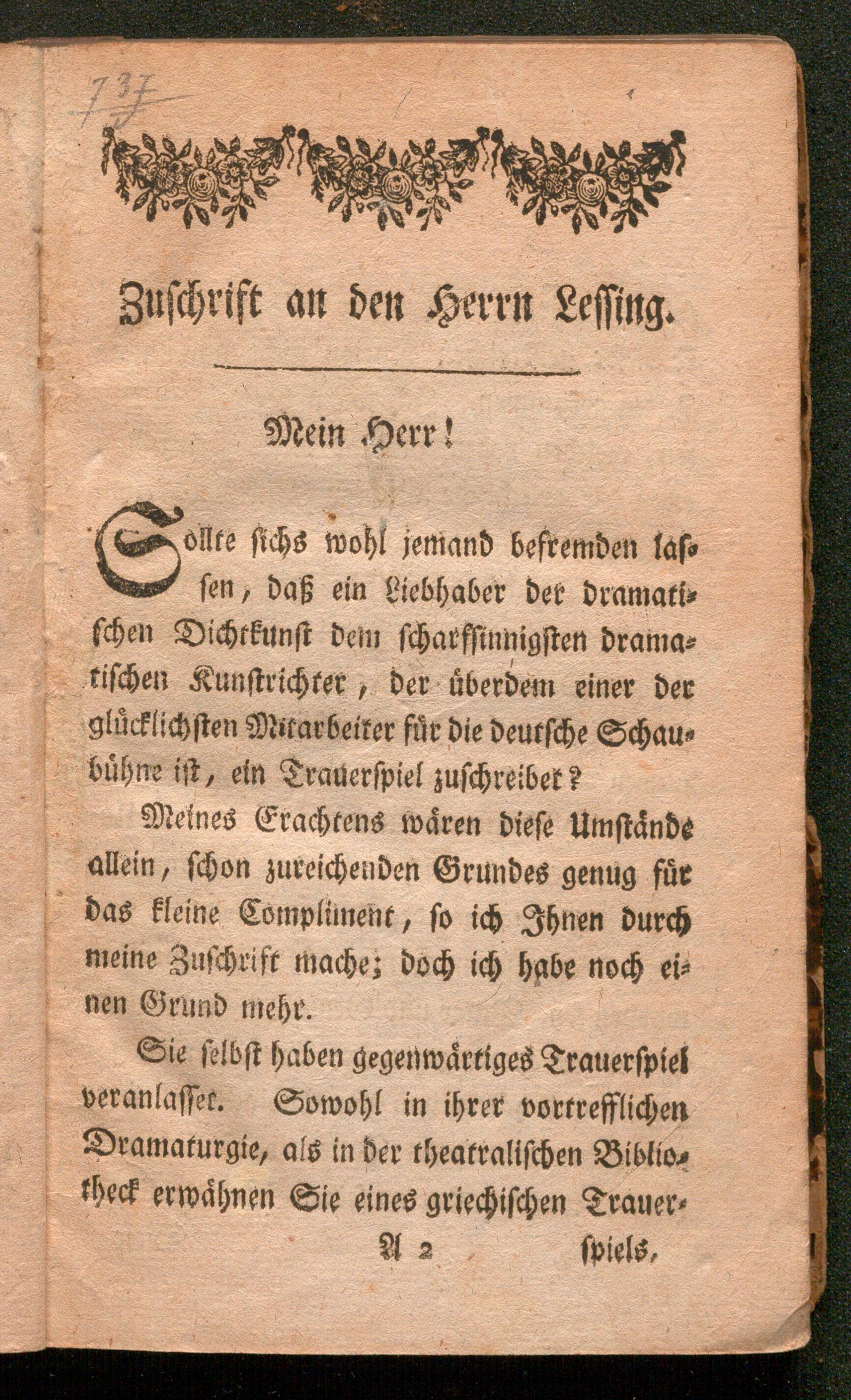 Antiope : Ein Trauerspiel in Versen. Dem Herrn Gotthold Ephraim Lessing gewidmet / [Kornelius Hermann von Ayrenhoff]