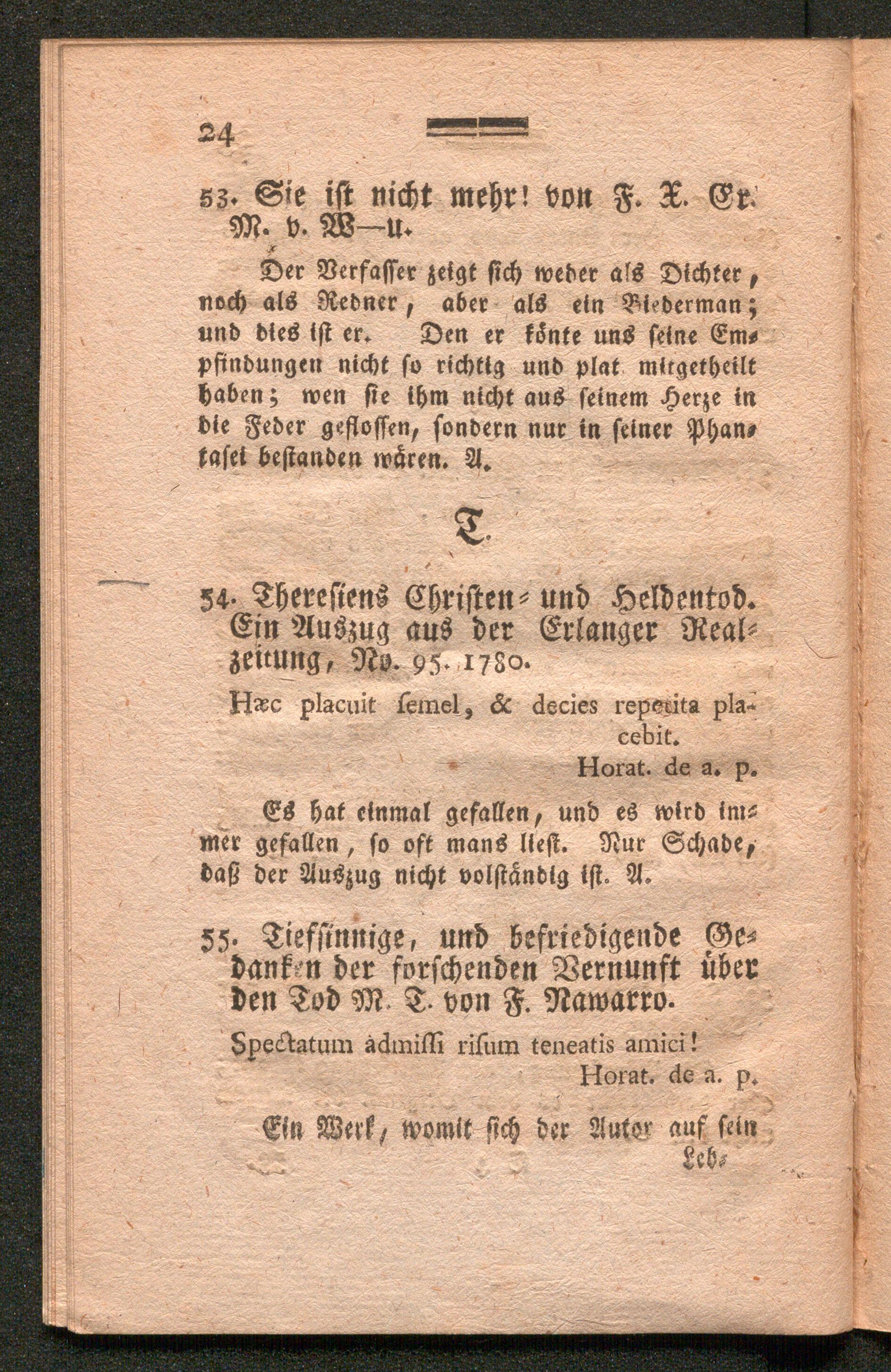 Rezension aller poetischen und prosaischen Stücke auf den Tod Marien Theresien : ein Vorbericht zu der von Trattnerischen Sammlung / von J.S. und M.A.