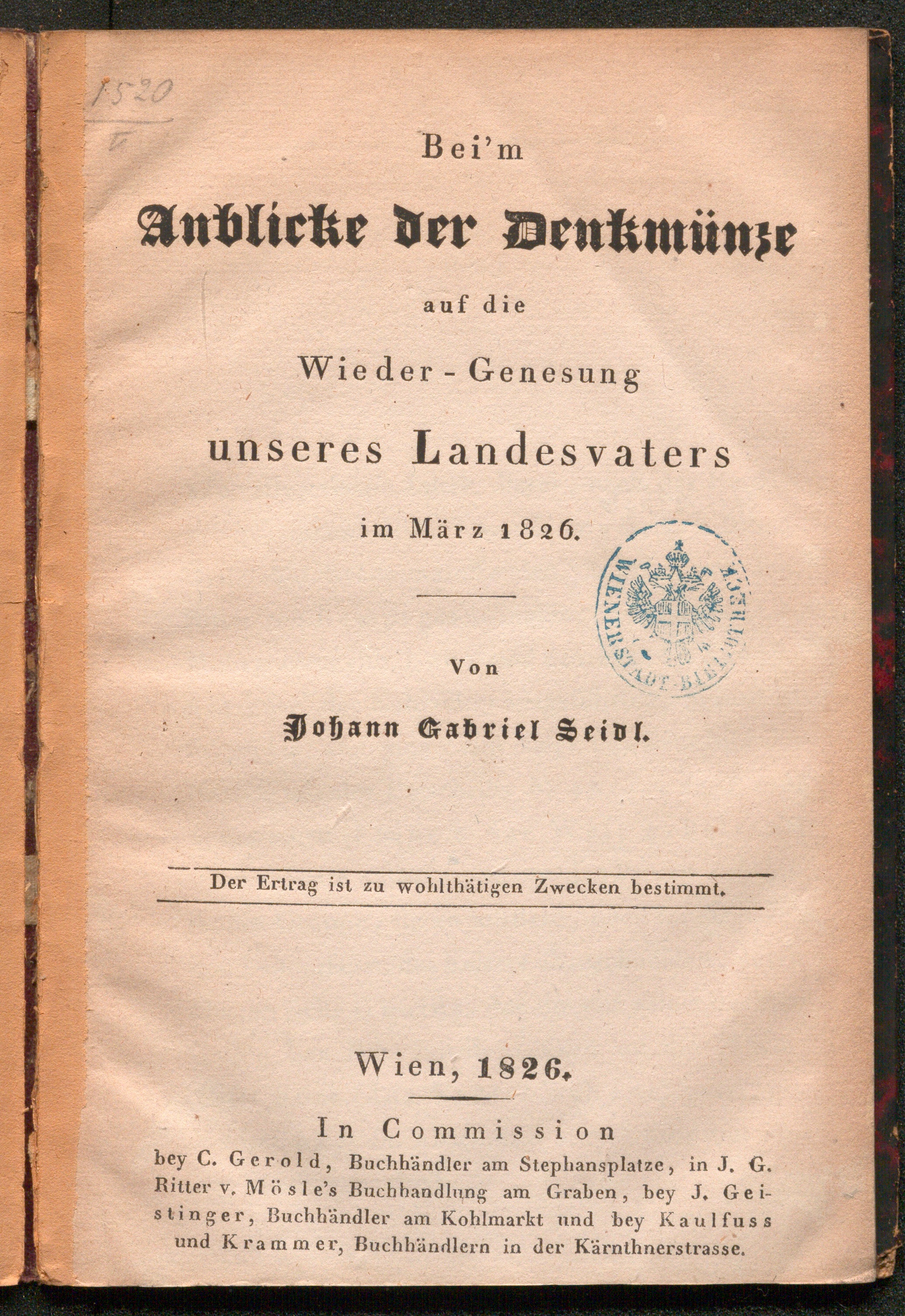 Bei'm Anblicke der Denkmünze auf die Wieder-Genesung unseres Landesvaters im März 1826 / Von Johann Gabriel Seidl