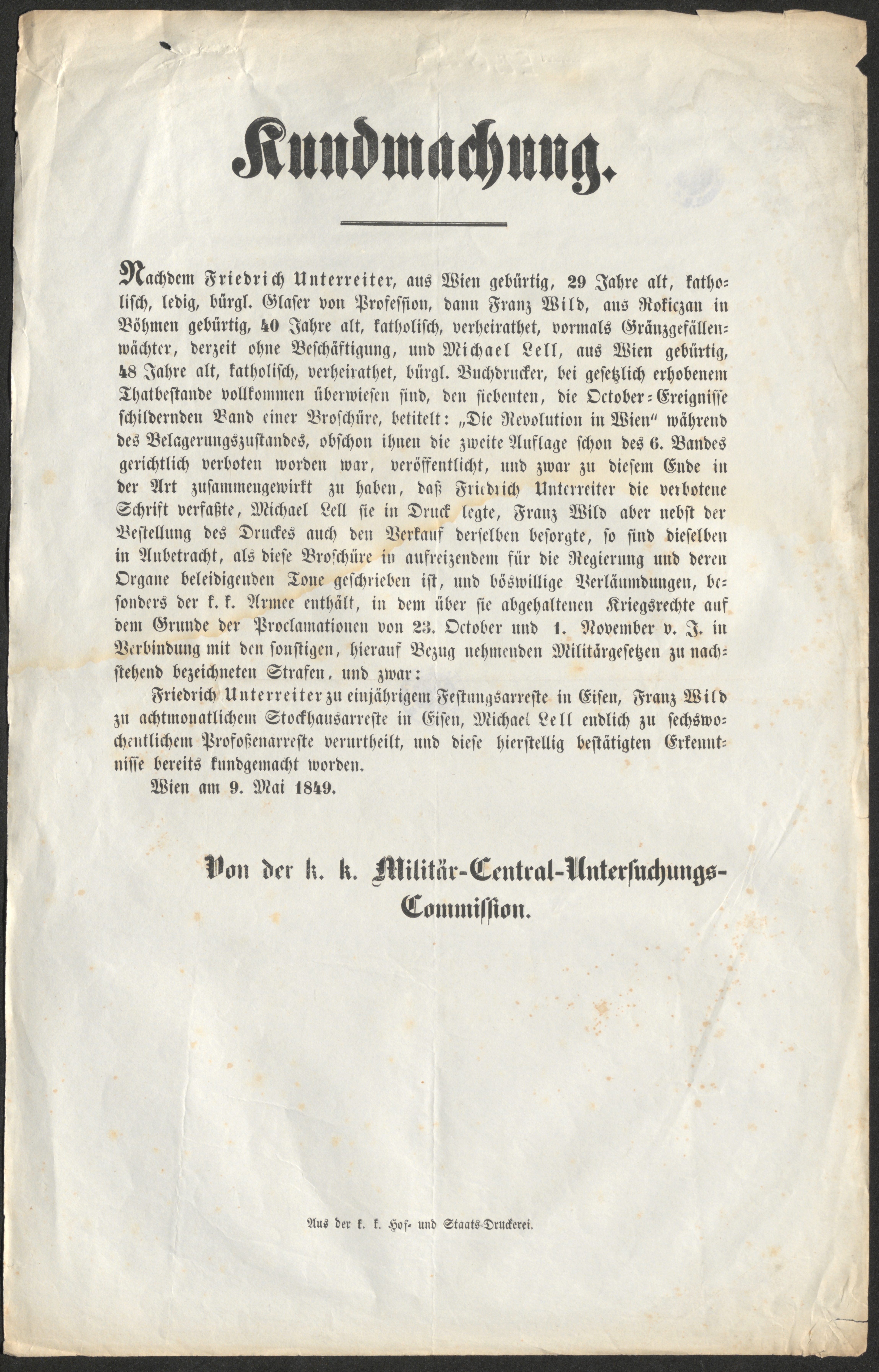 Kundmachung / k. k. Militär-Central-Untersuchungs-Commission