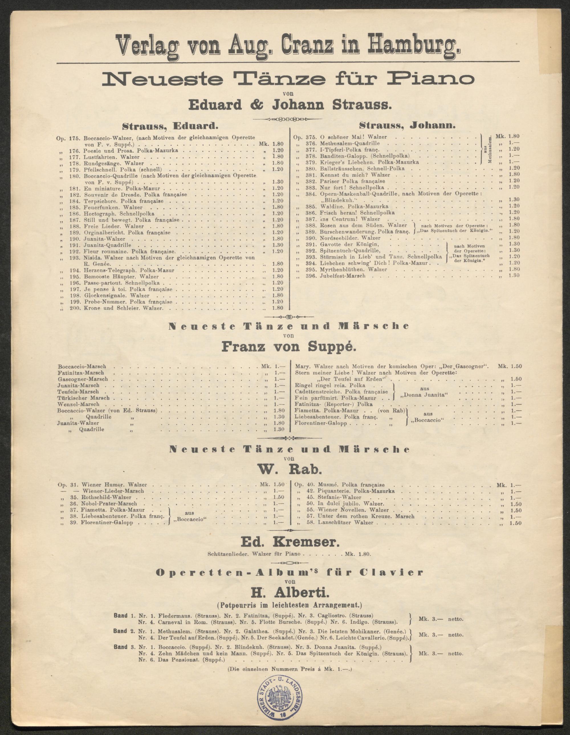[Konvolut von Erst- und Frühdrucken von Werken Johann Strauss]