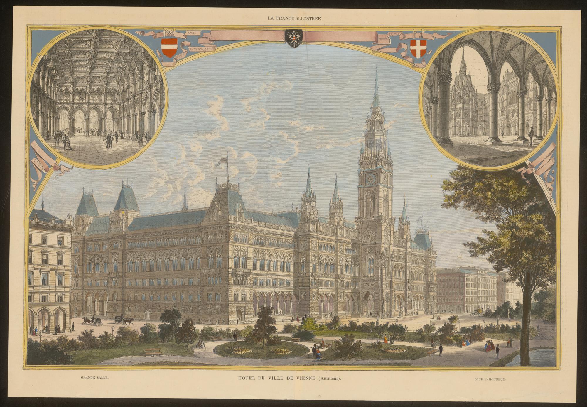 Hotel de ville de Vienne (Autriche) : grande salle ; cour d'honneur