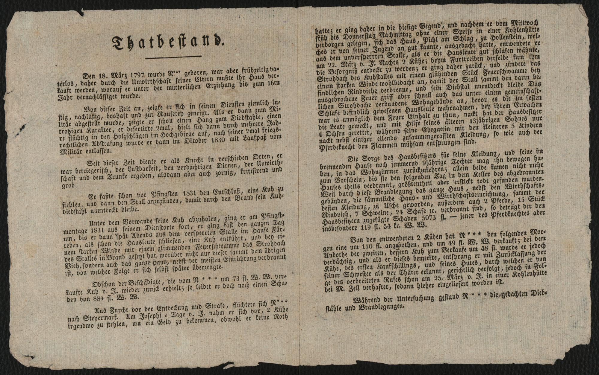 Todesurtheil, welches von dem Landgerichte Scheibbs über die mit dem N*** wegen Brandlegung und Diebstahl abgeführte Kriminaluntersuchung am 21. März 1833 mit dem Strange vollzogen wurde