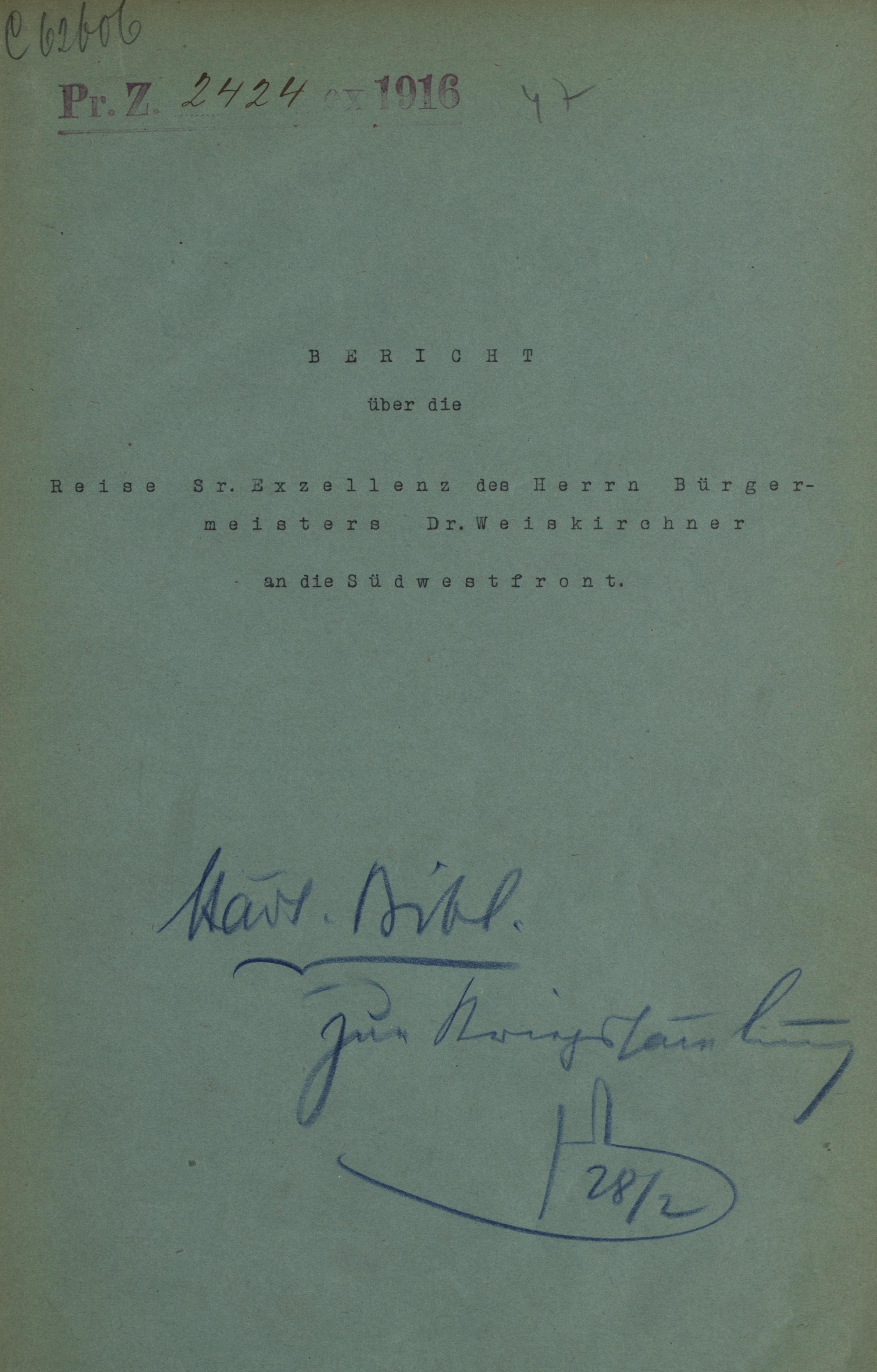 Bericht über die Reise Sr. Exzellenz des Herrn Bürgermeisters Weiskirchner an die Südwestfront : [23. Jänner bis 1. Februar 1916] / [von Josef Formanek]