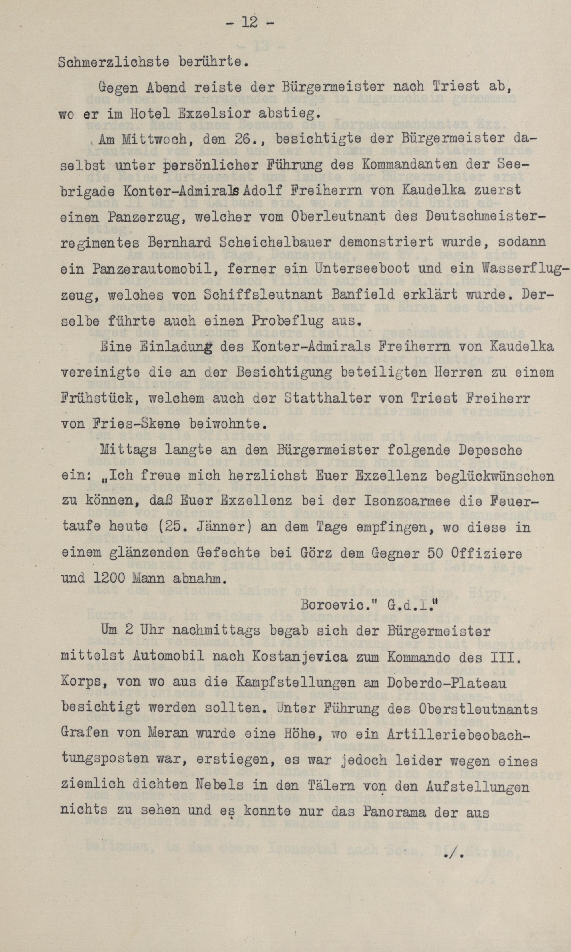 Bericht über die Reise Sr. Exzellenz des Herrn Bürgermeisters Weiskirchner an die Südwestfront : [23. Jänner bis 1. Februar 1916] / [von Josef Formanek]