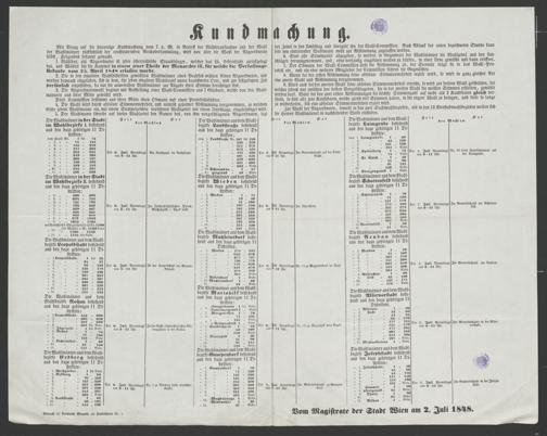 Kundmachung [Wien, 2. Juli 1848] : Mit Bezug auf die hierortige Kundmachung vom 7. v. M. in Betreff der Wähleraufnahme und [...]