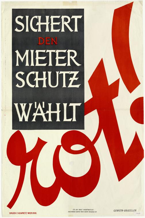 Sichert den Mieterschutz Wählt rot! : Gewista-Griessler / Greissler. Wien : F. Adametz, 1927. Wienbibliothek im Rathaus,