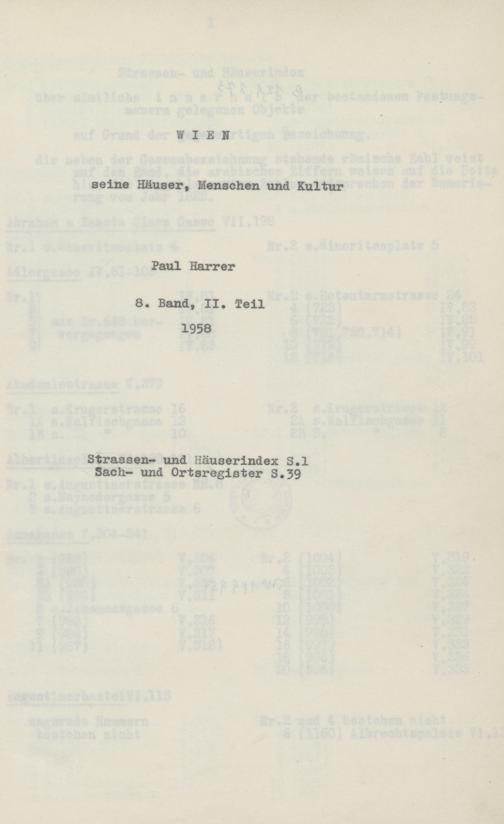 Wien, seine Häuser, Menschen und Kultur. Wien, seine Häuser, Menschen und Kultur / von Paul Harrer-Lucienfeld. Wien : Selbstverl. : 8,2 / von Paul Harrer-Lucienfeld. Wien : Selbstverl., 1958. Wienbibliothek im Rathaus, B-129273, https://resolver.obvsg.at/urn:nbn:at:AT-WBR-125365 / Public Domain Mark 1.0