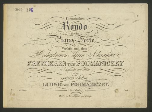 Ungarisches Rondo : für das Pianoforte ; 1. Werk / verfaßt von Ludwig von Podmaniczky. Wien : Steiner, [ohne Jahresangabe]. Wienbibliothek im Rathaus, Mc-3969, https://resolver.obvsg.at/urn:nbn:at:AT-WBR-130322 / Public Domain Mark 1.0
