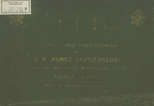 K.K. Kunst-Erzgiesserei: Katalog über Kunstbronzen der K. K. Kunst-Erzgiesserei : Filiale der Berndorfer Metalwaaren-Fabrik Arthur Krupp Wien, IV. Gusshausstrasse 25. Wien, IV. : [Verlag nicht ermittelbar], [1910?]. Wienbibliothek im Rathaus, B-205199, https://resolver.obvsg.at/urn:nbn:at:AT-WBR-133051 / Public Domain Mark 1.0