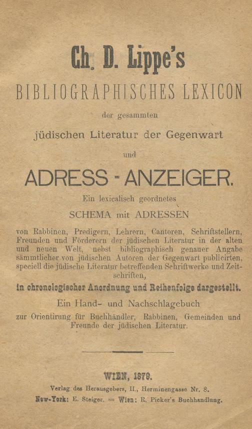 Lippe, Chayim D.: Ch. D. Lippe's bibliographisches Lexicon der gesammten jüdischen Literatur der Gegenwart und Adress-Anzeiger : [...]