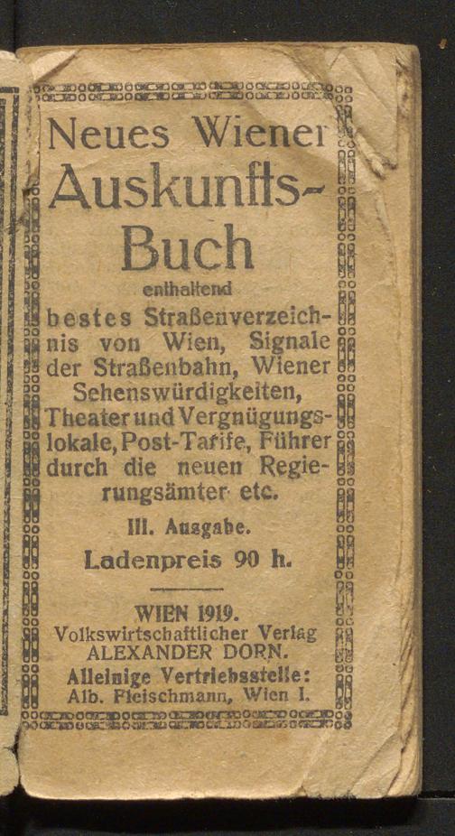Neues Wiener Auskunftsbuch : enthaltend bestes Straßenverzeichnis von Wien, Signale der Straßenbahn, Wiener Sehenswürdigkeiten, [...]