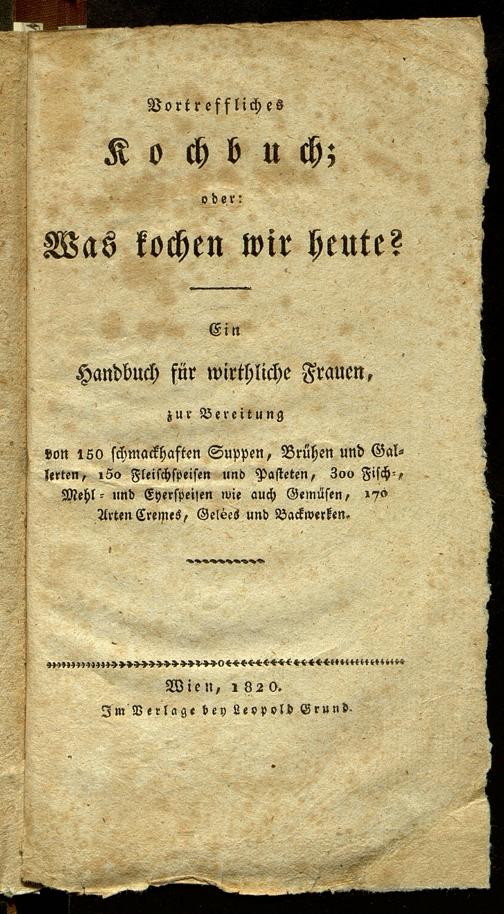 Vortreffliches Kochbuch; oder: Was kochen wir heute? : Ein Handbuch für wirthliche Frauen, zur Bereitung von 150 schmackhaften [...]