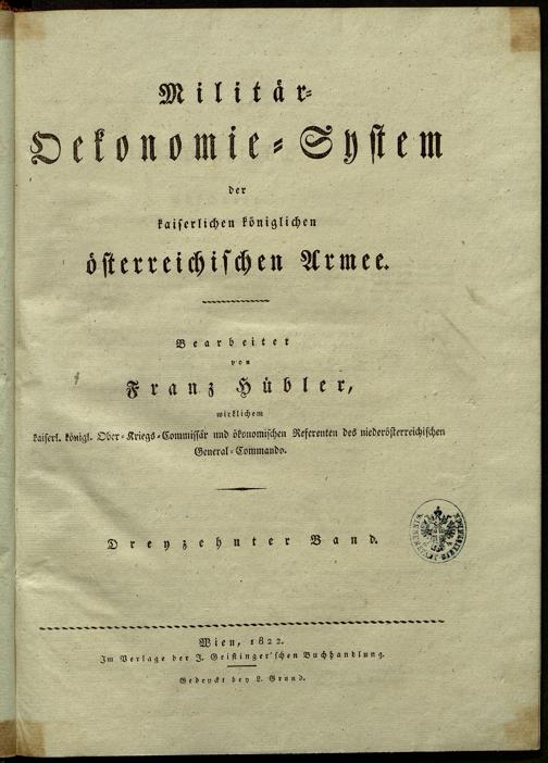 Militär-Ökonomie-System der kaiserlichen königlichen österreichischen Armee. Militär-Ökonomie-System der kaiserlichen königlichen [...]
