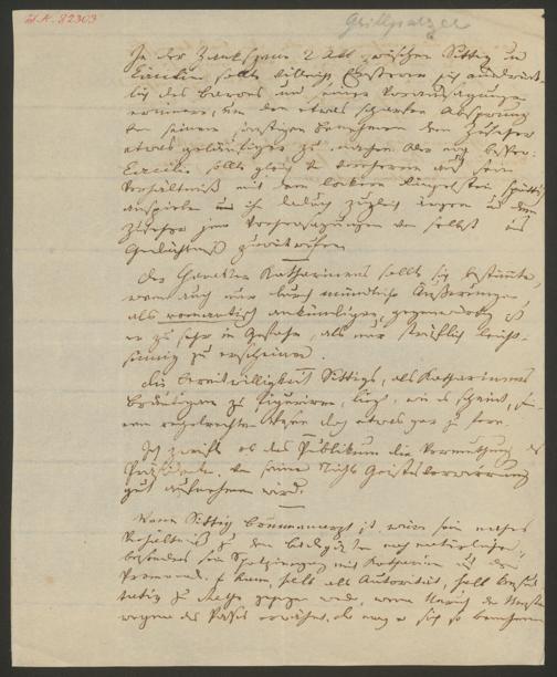 Grillparzer, Franz: Begutachtung von Eduard von Bauernfelds Schauspiel "Bürgerlich und Romantisch". o.O., 1835.04.°°. Wienbibliothek im Rathaus, H.I.N.-82303, https://resolver.obvsg.at/urn:nbn:at:AT-WBR-178895 / Public Domain Mark 1.0