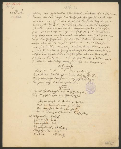 Grillparzer, Franz: Tagebuchnotizen und Gedichte. o.O., 1857