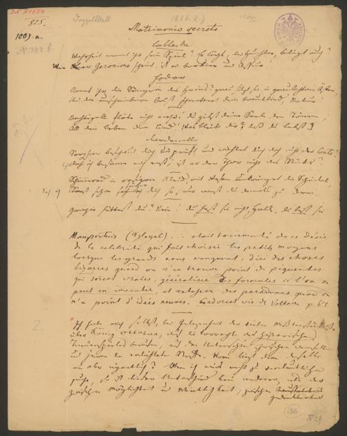 Grillparzer, Franz: 1. Titel: Matrimonia secreto. Letztes Gedicht: Entzauberung. o.O., 1825. Wienbibliothek im Rathaus, H.I.N.-81554, https://resolver.obvsg.at/urn:nbn:at:AT-WBR-179328 / Public Domain Mark 1.0