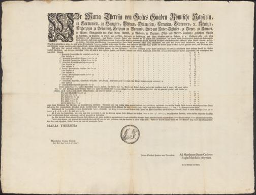 Wir Maria Theresia ... Als haben Wir gnädigst beschlossen, setzen, ordnen, und befehlen hiermit, daß vom künftigen 1ten Novembris [...]