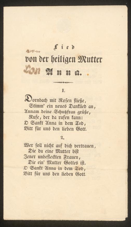 Lied von der heiligen Mutter Anna. [S.l. Wien?], [ca. 1820]