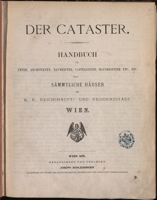 Der Cataster : Handbuch für Ämter, Architekten, Baumeister, Capitalisten, Hausbesitzer etc., etc. über sämmtliche Häuser [...]