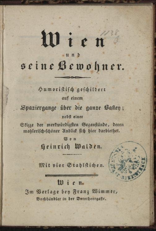 Wien und seine Bewohner : humoristisch geschildert auf einem Spaziergange über die ganze Bastey ; nebst einer Skizze der [...]