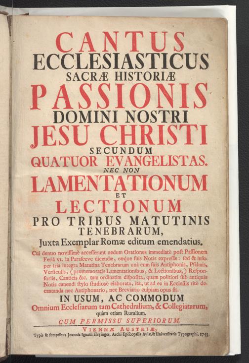 Cantus Ecclesiasticus Sacrae Historiae Passionis Domini Nostri Jesu Christi : Secundum Quatuor Evangelistas ; Nec Non Lamentationum [...]