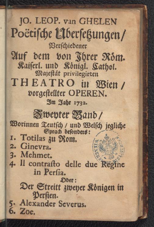 Ghelen, Johann Leopold von: Jo. Leop. van Ghelen Poëtische Ubersetzungen, Verschiedener Auf dem von Ihrer Röm. Kaiserl. und [...]