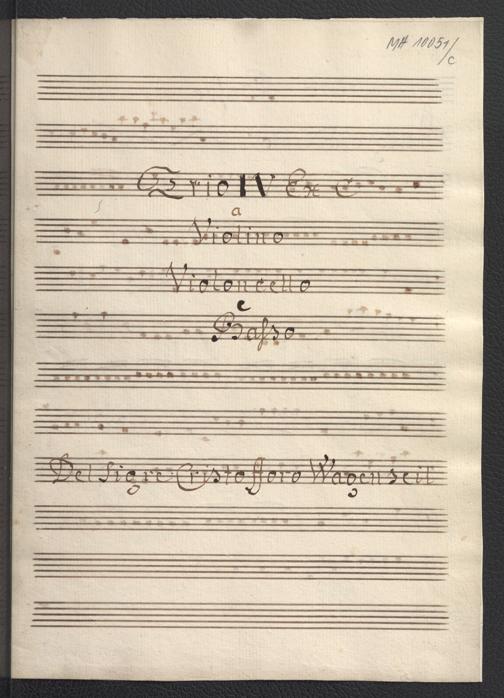 Trio IV : ex C a Violino, Violoncello e Basso / del Cristofforo [Giorgio] Wagenseil. [ohne Jahresangabe]. Wienbibliothek im Rathaus, MHc-10051, https://resolver.obvsg.at/urn:nbn:at:AT-WBR-700628 / Public Domain Mark 1.0