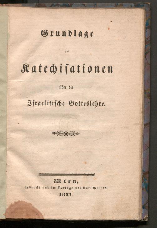 Grundlage zur Katechisationen über die israelitische Gotteslehre. Wien : K. Gerold, 1831
