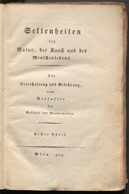 Seltenheiten der Natur, der Kunst und des Menschenlebens : Zur Unterhaltung und Belehrung / vom Verfasser der Gallerie des Wundervollen. Wien, 1808-. Wienbibliothek im Rathaus, https://resolver.obvsg.at/urn:nbn:at:AT-WBR-1127147 / Public Domain Mark 1.0