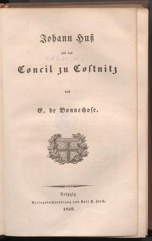 Johann Huß und das Concil zu Costnitz / nach E. de Bonnechose. Leipzig : C.B. Lorck, 1848