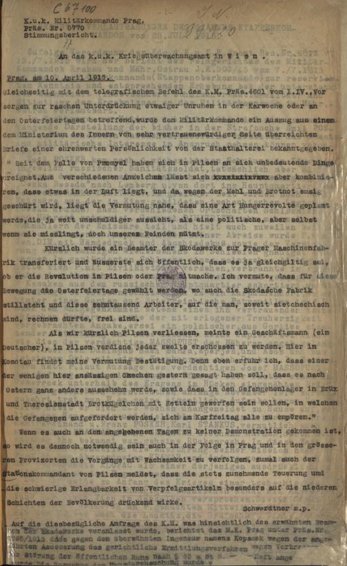 - PDF K.u.k. Miltärkommando Prag, [...] Stimmungsbericht. 10. April 1915