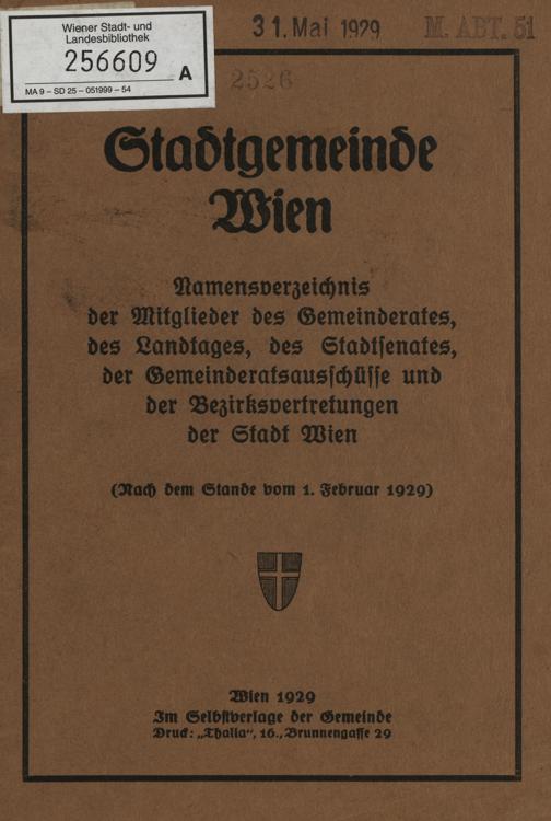 Namensverzeichnis der Mitglieder des Gemeinderates (Landtages) ... des Stadtsenates (Landesregierung), der Gemeinderatsausschüsse, [...]