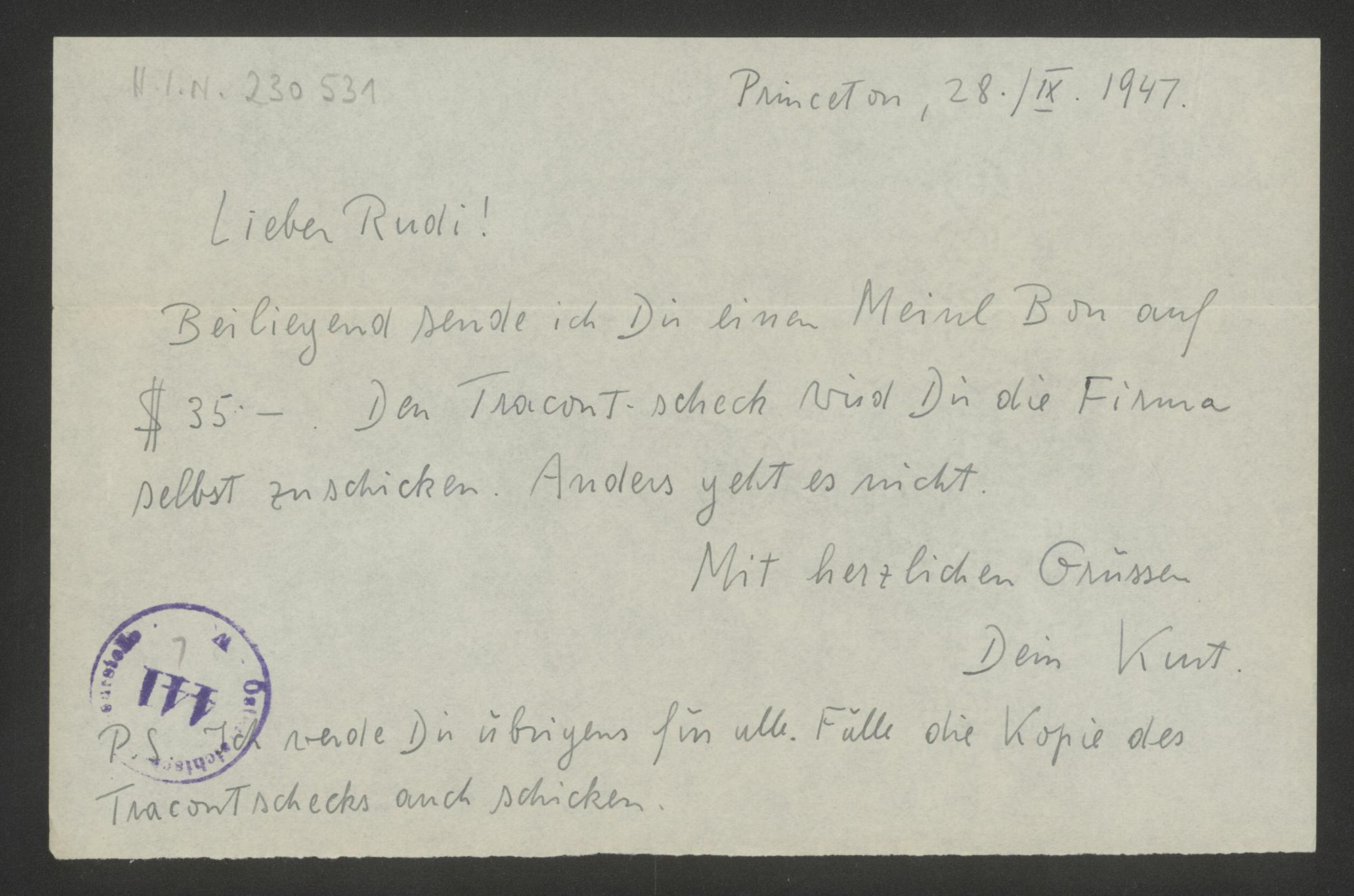 Brief an Rudolf Gödel