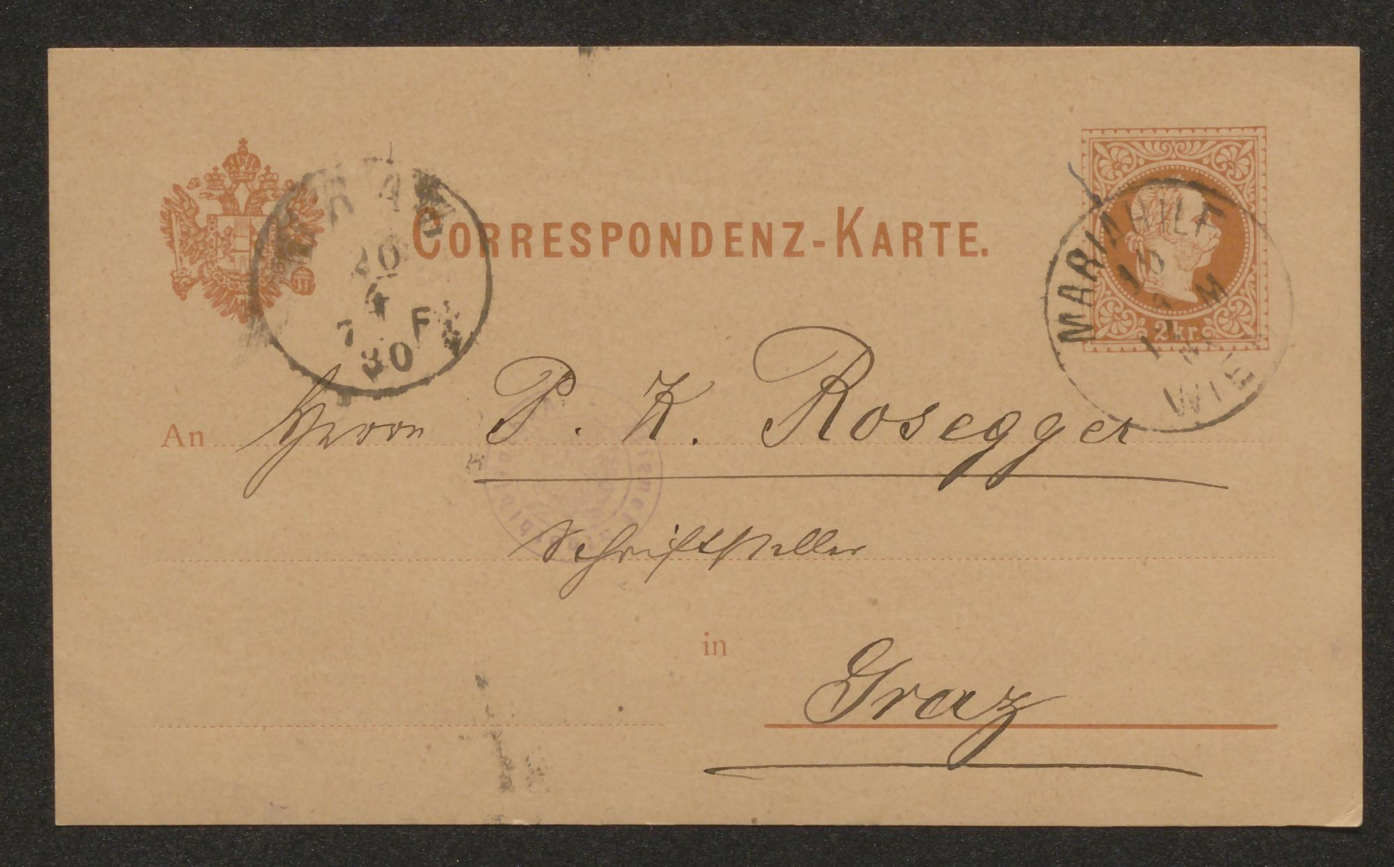 Korrespondenzkarte an Peter Rosegger