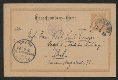 Postkarte an Karl Emil Franzos