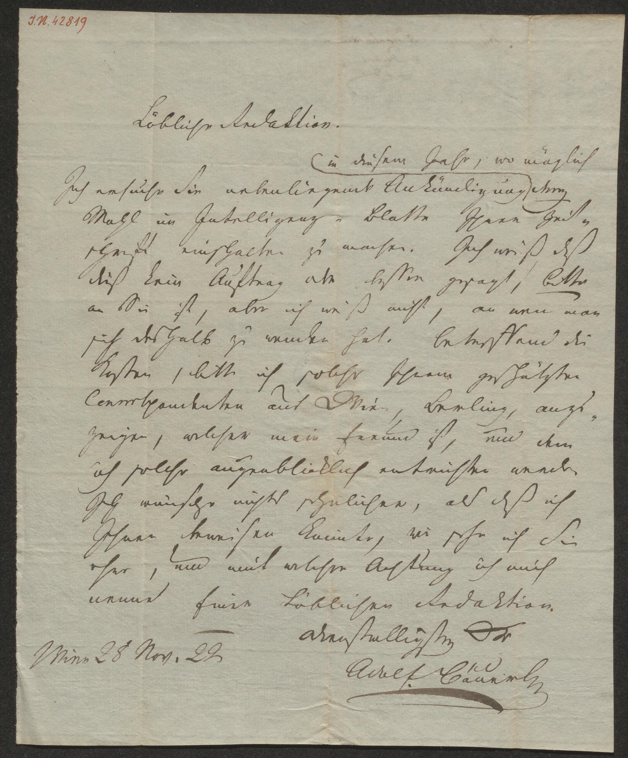 Brief an die Redaktion des Morgenblattes