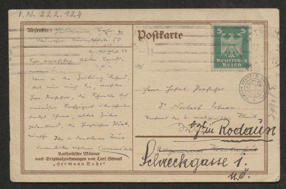 Porträtpostkarte an Norbert Ortner