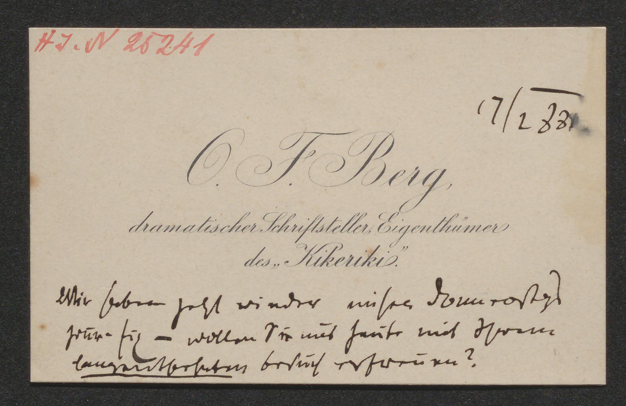 Visitenkarte an Unbekannt