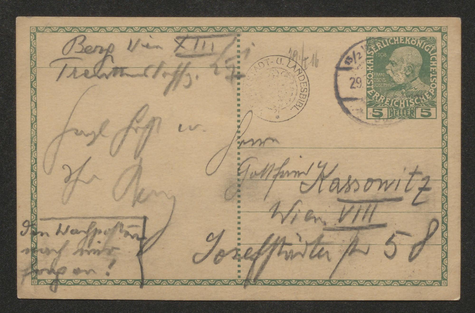 Postkarte an Gottfried Kassowitz