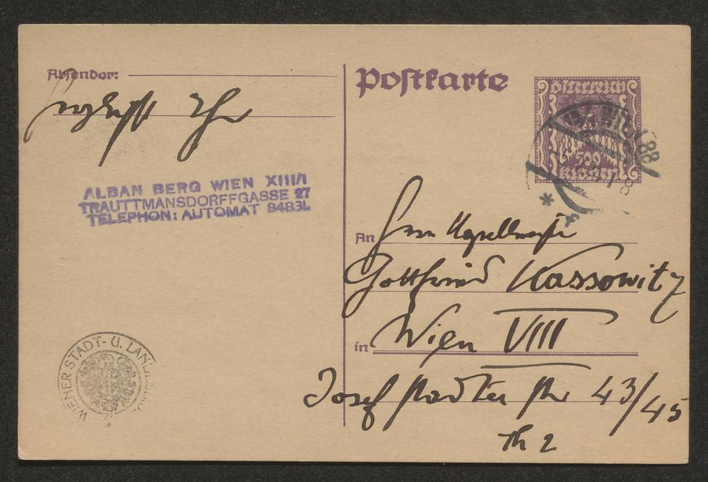 Postkarte an Gottfried Kassowitz